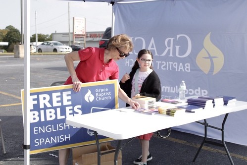 Through our Bible tent, we distribute free Bibles and speak with visitors about the hope found in the Gospel.